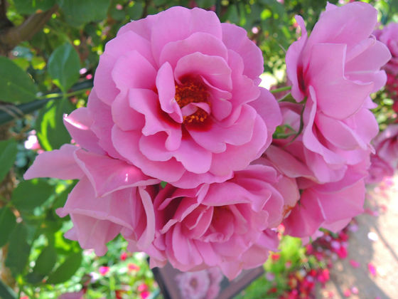 京成 アメジストバビロン つる性 花径6~8cm 樹高 1.8m~2.3m 四季咲き 平咲きの花は藤色に濃い赤紫のブロッチが入り、1枝7輪ほどの房になります。 花付き花保ちがよく、四季咲き性が強いです。株が小型のうちから花をつけ伸長します。実が付きやすいので、定期的に花がらを取ったほうが花付きがよくなります。他のシリーズに比べ、とげが少なく、誘引など扱いやすいです。 冬の剪定で短く切っても春に花を咲かせます。