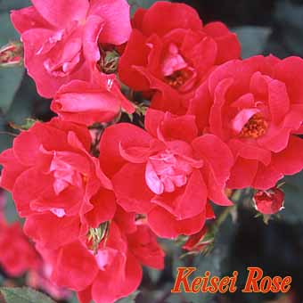 ノックアウト 中輪系 花径7~8㎝ 樹高0.7m~0.9m 四季咲き 非常に花付きが良く、しかも育てやすいバラで、開ききる前の蕾にはティー系の香りもある。実付きが良いため、花を楽しむ時は咲きがら摘みを行ってください。