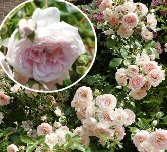 修景 シュラブ 返り咲き 花色:パステルピンク 花形:半剣弁咲 花径: 6~8cm 樹高:0.8m 微香
