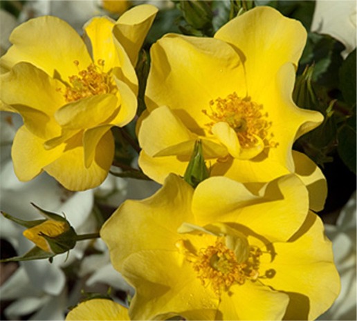 修景 シュラブ 花色: 鮮黄色~淡黄色  花形: 丸弁一重咲き  花径: 5~7 cm 樹高: 1.2~1.5 m 樹形: 半横張り性  微香
