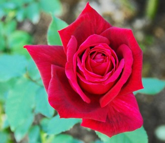 ベルベットのように深い光沢感のある濃赤色のバラ。世界的に「香りのバラ」として賞賛される名花です。
